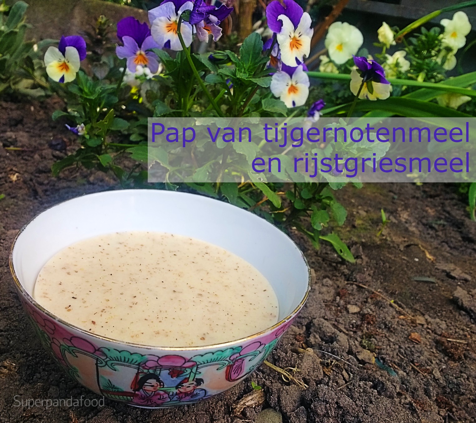 Dit papje van tijgernotenmeel (chufameel) en rijstgriesmeel is lekker als ontbijt of als tussendoortje. Het is glutenvrij en koemelkvrij. Tijgernoten of chufa’s zijn een echt superfood. Ze zijn rijk aan ijzer, magnesium, vezels, proteïnen en antioxidanten. Bovendien bevorderen ze de spijsvertering. Tijgernotenmeel is erg veelzijdig. Het is vergelijkbaar met amandelmeel. Ik combineer het chufameel met rijstgriesmeel zodat de pap goed indikt. Tijgernoten zijn bekend van het Spaanse drankje horchata de chufa. Een heerlijk zoete plantaardige melk die ik in Valencia heb leren kennen. Je herkent de smaak ervan in dit papje. Tijgernoten hebben een zoete smaak en behoren tot het element aarde volgens de Chinese voedingsleer. Ze zijn dus ideaal om maag en milt te versterken.