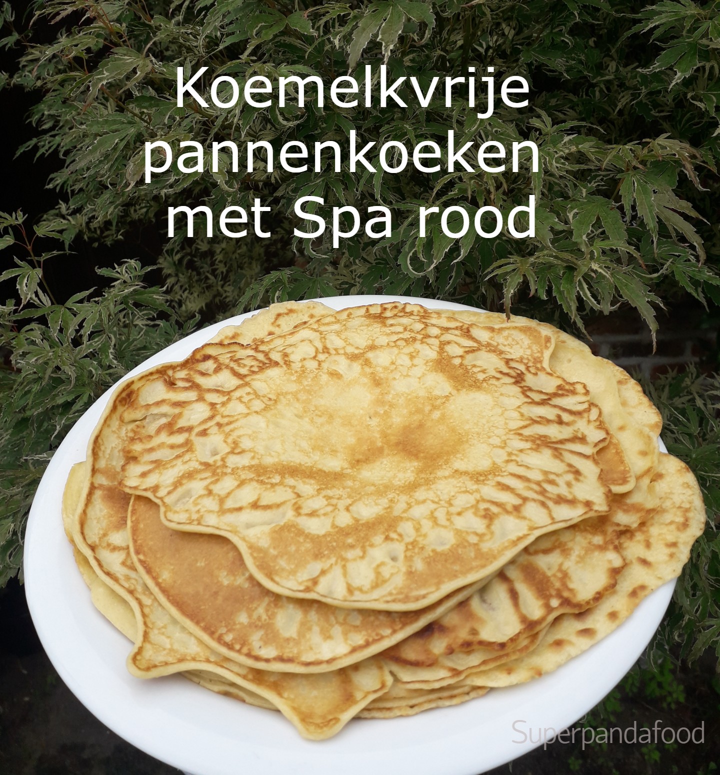 - Voor glutenvrije en koemelkvrije pannenkoeken gebruik je 5 eieren, 125 g Schär Universal Mix, 125 g maïsmeel, 240 ml amandelmelk en 240 ml Spa rood.